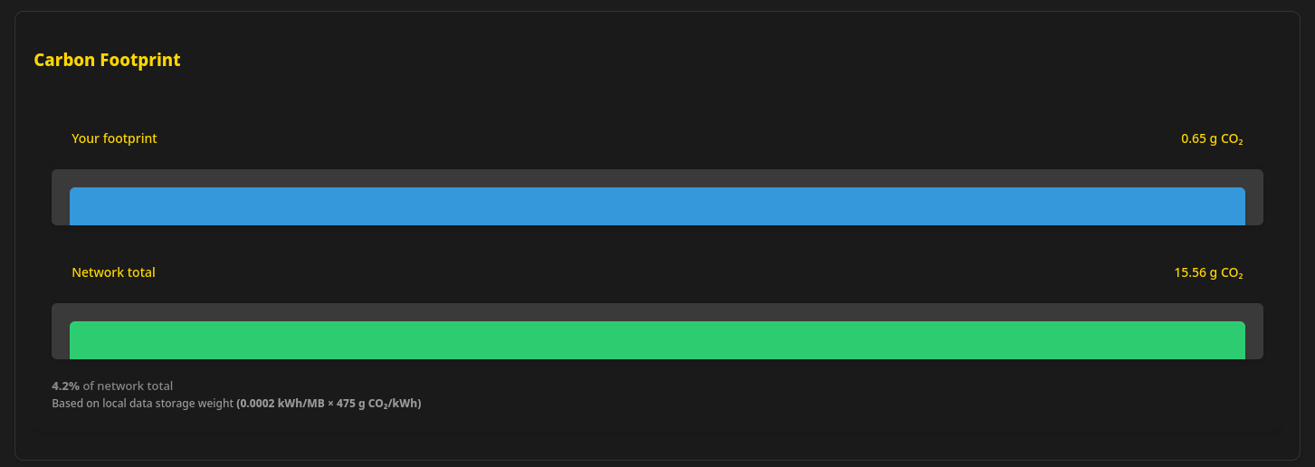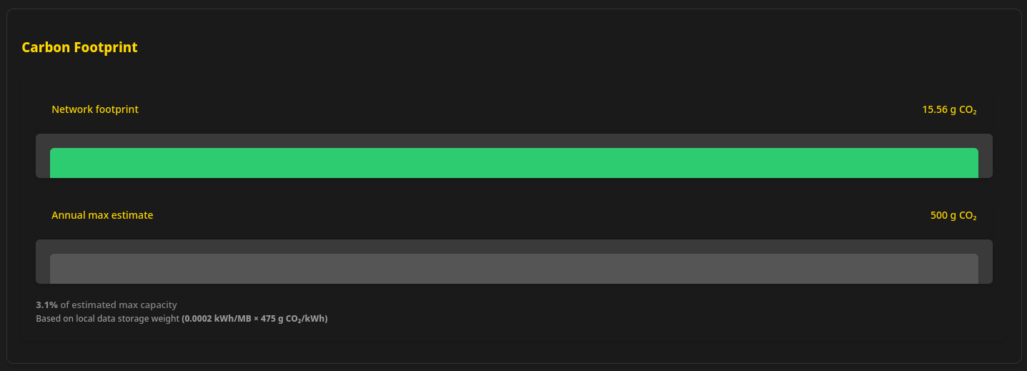 Oasis contains its own carbon footprint meter.